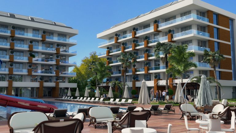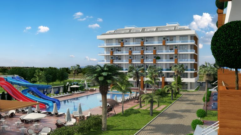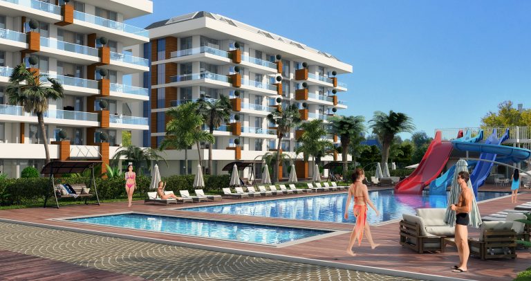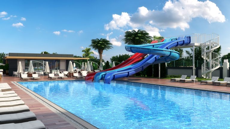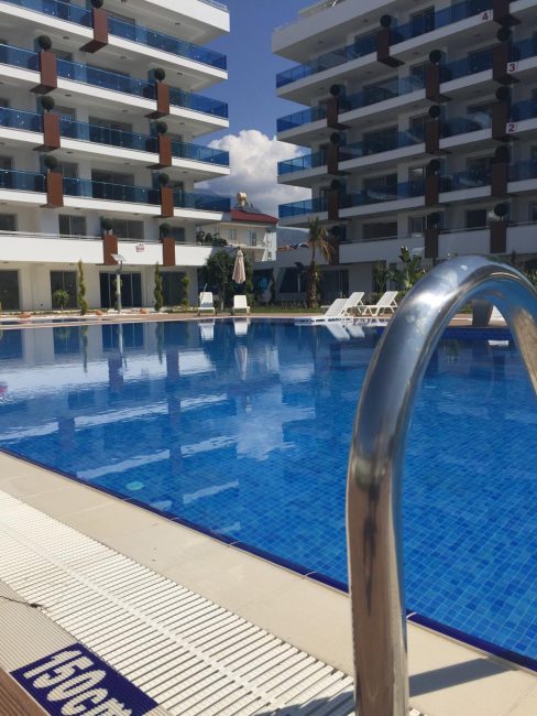 Ortak alanlar: Kompleksimizde çok büyük bir açık yüzme havuzu vardır ve ayrıca havuz etrafında çok büyük bir güneşlenme terasları ile su kaydırağı bulunuyor.